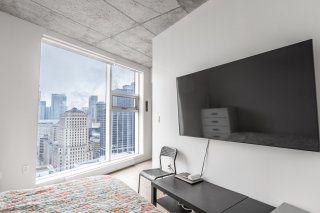 Vivez au-dessus de la ville au Humaniti Montréal ! Ce studio moderne au 32e étage offre vue panoramique, fenêtres pleine hauteur, cuisine intégrée et laveuse/sécheuse. Emplacement exceptionnel au centre-ville, à deux pas du Vieux-Port, Chinatown, quartier financier et métro Square-Victoria--OACI. Profitez d'installations haut de gamme : piscines sur le toit, gym, spa, lounge, café et concierge. Le meilleur du style de vie urbain de Montréal.
